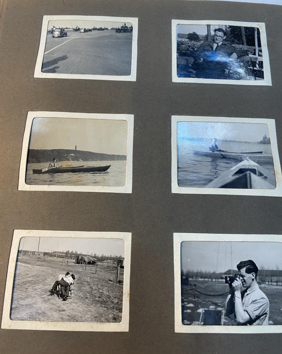 118 photographs showing R.A.F. Personnel in post-war Germany. The photographs are housed in a WW1 Imperial German album, with a embossed Iron Cross to cover with embossed silver letters.