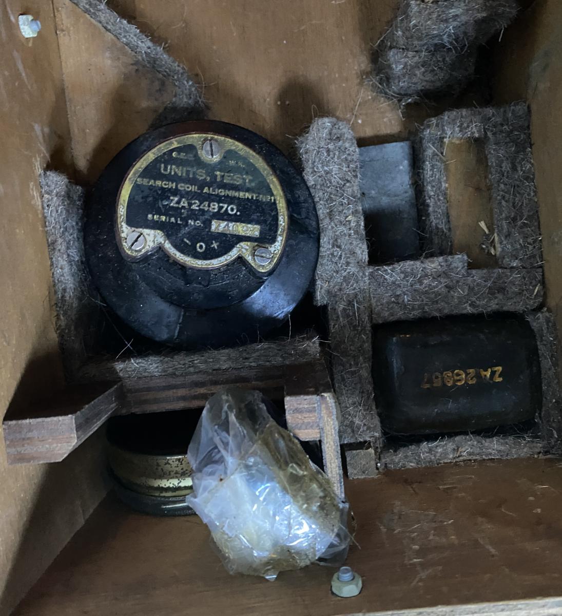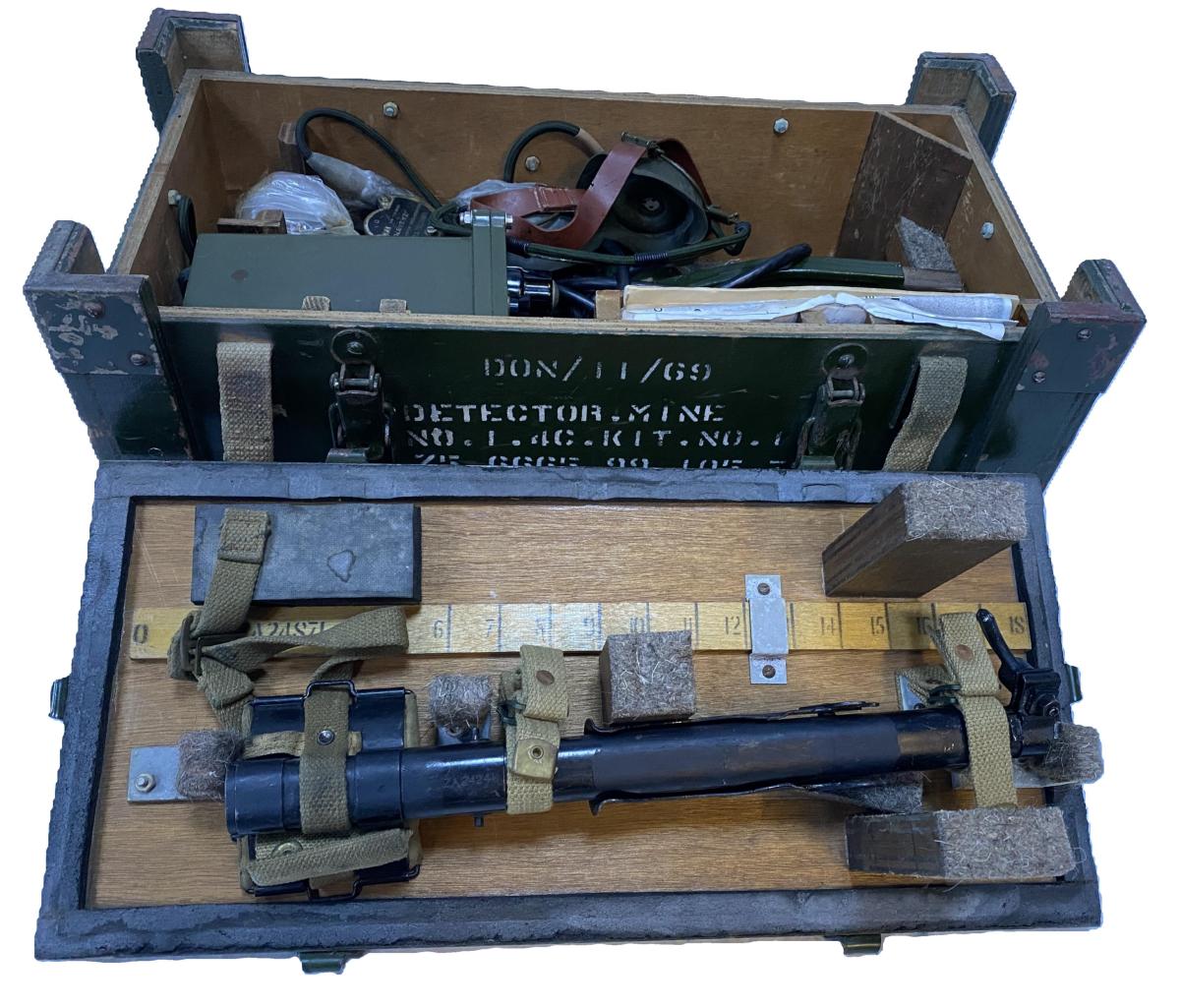 Complete with remote control, headset and 1960 dated manual. The No4c Mine Detector was an updated and improved version of the No 4a mine detector that had been developed during World War 2 .The No 4c was introduced in the late 1950's.