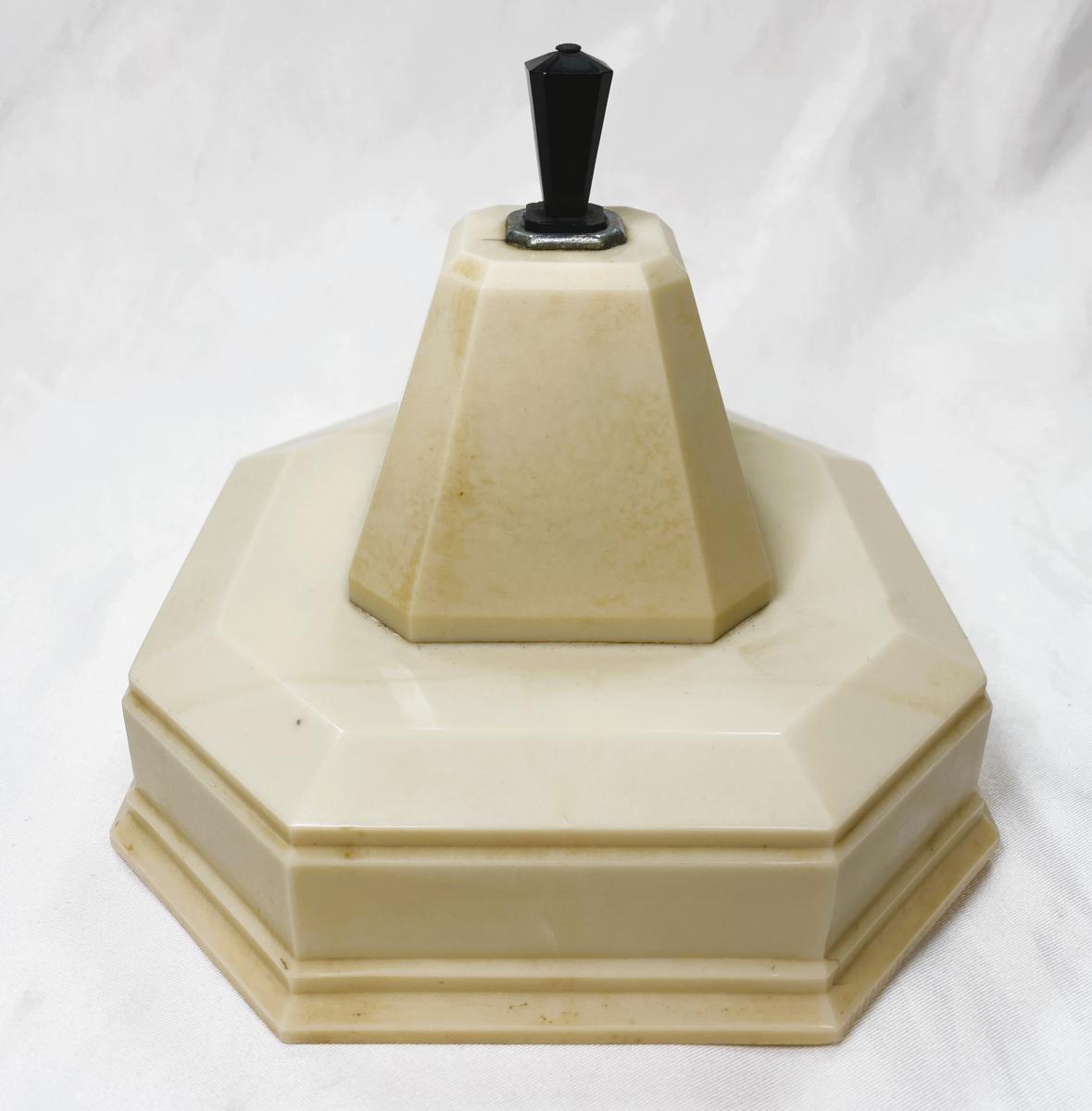 Manufactured by Hillier Engineering Co Ltd Rochdale England in the 1930's. This is a very rare Art Deco automatic table lighter made from Lucite and metal. It comes complete with steel wand and fuel filler. The bottom of the lighter has all the manufacturers details and storage for the fuel filler. Excellent condition.