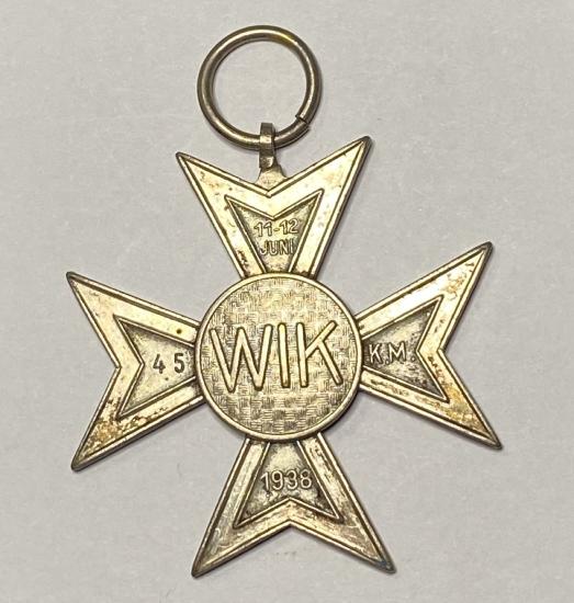 (Code: 2142) | |  Front has date 11-12 June 1938 and 45km.Centre of cross in circle are the letters WIK. No ribbon. Good condition