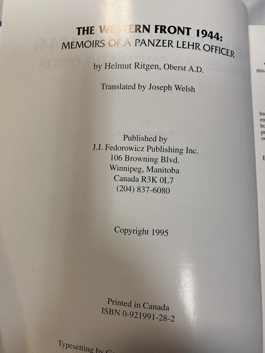 The Western Front 1944 -Memoirs Of A Panzer Lehr Officer