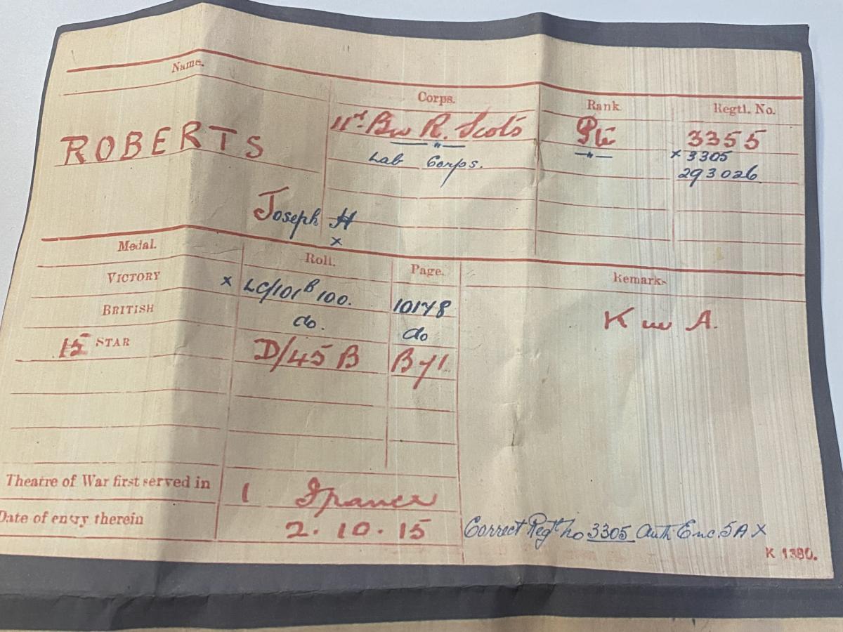 WW1 British War and Victory Medal named to 3305 Pte. J.H. Roberts, Royal Scots. Police medal named to Section Leader Joseph. H. Roberts