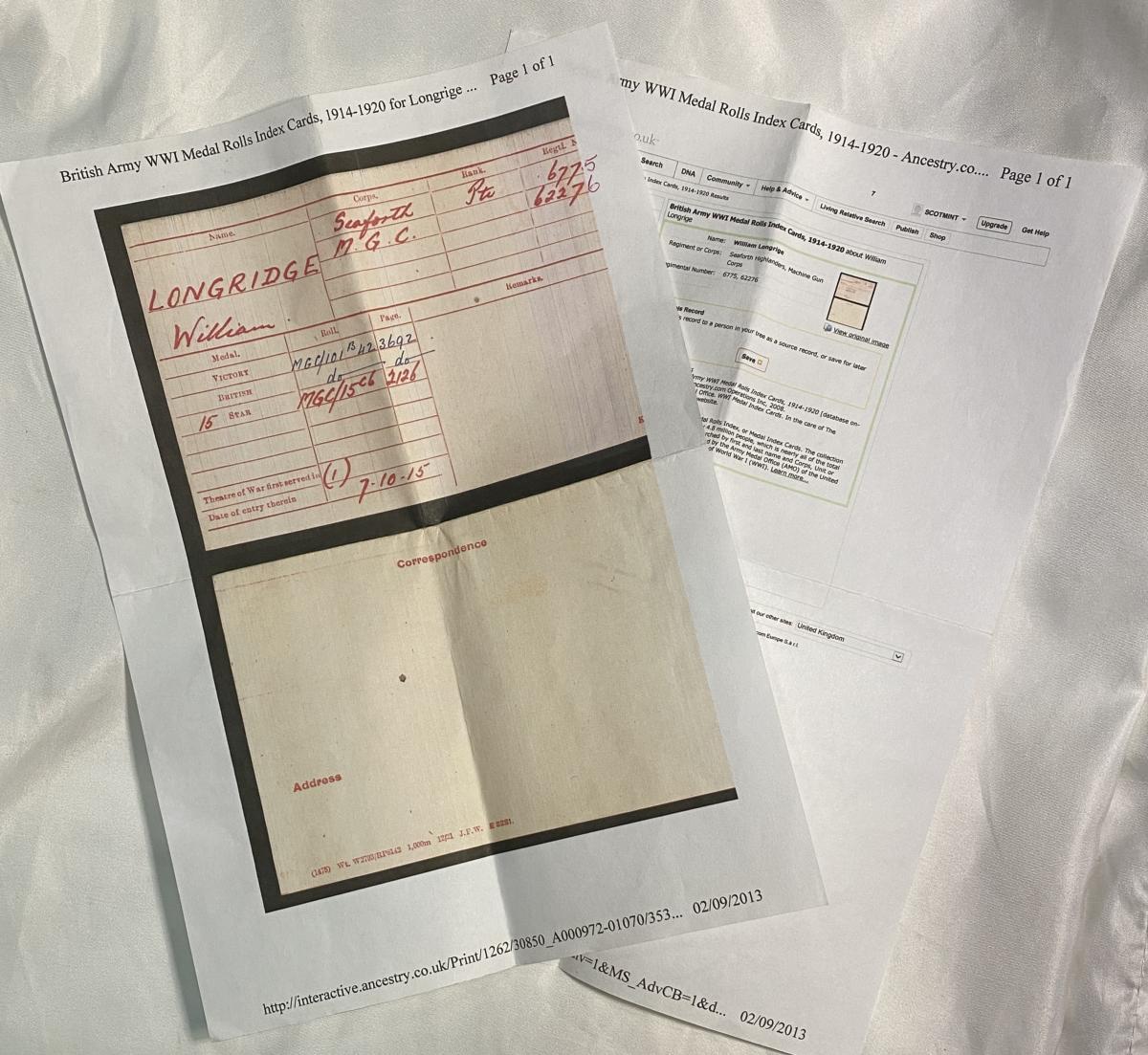 Named to Pte W Longridge. Complete with photocopies of original paperwork.