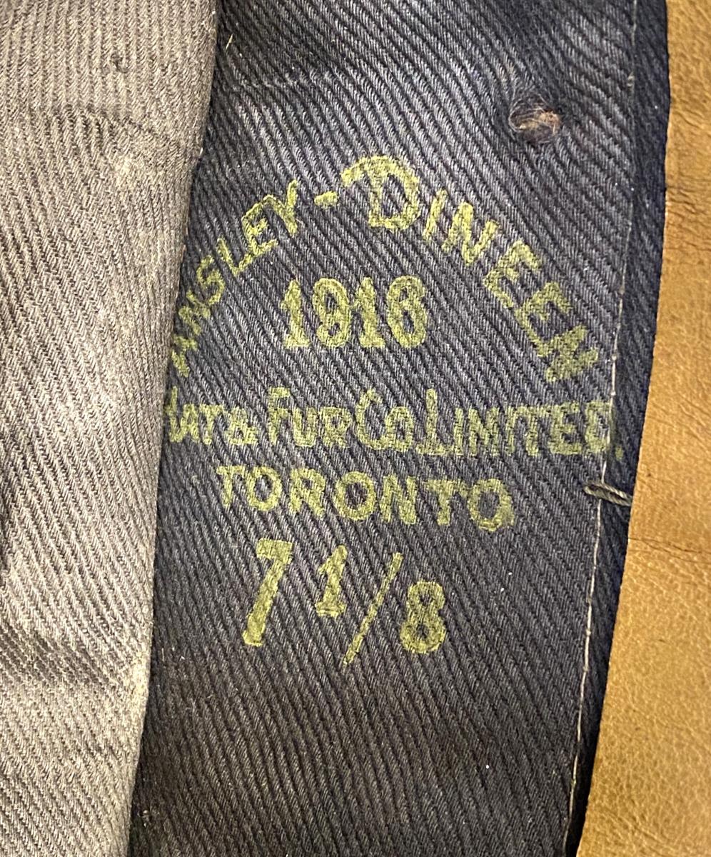 Excellent condition with maker stamp 'AINSLEY -DINEEN HATS & FUR Co LIMITED TORONTO ' to interior with date 1916.