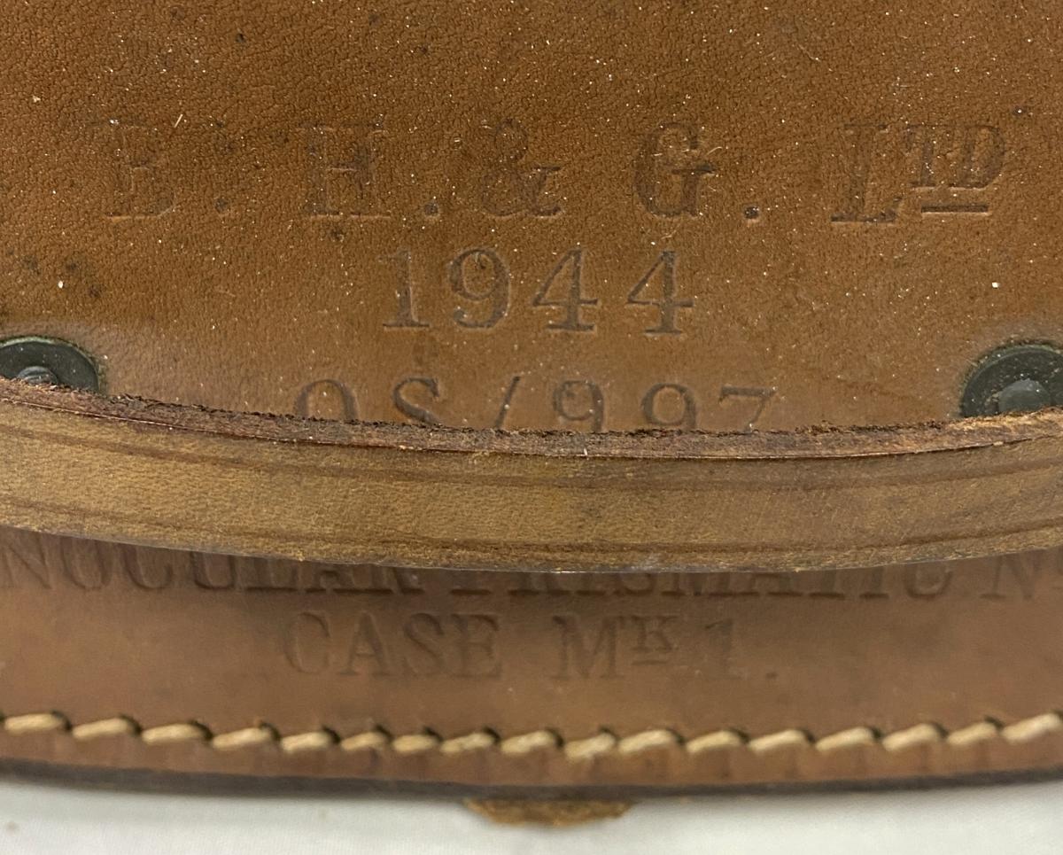 Stamped to top of closure lid 'B.H. & G. Ltd 1944 OS/997 BINOCULAR PRISMATIC No.5 Case Mk1' . With original strap.