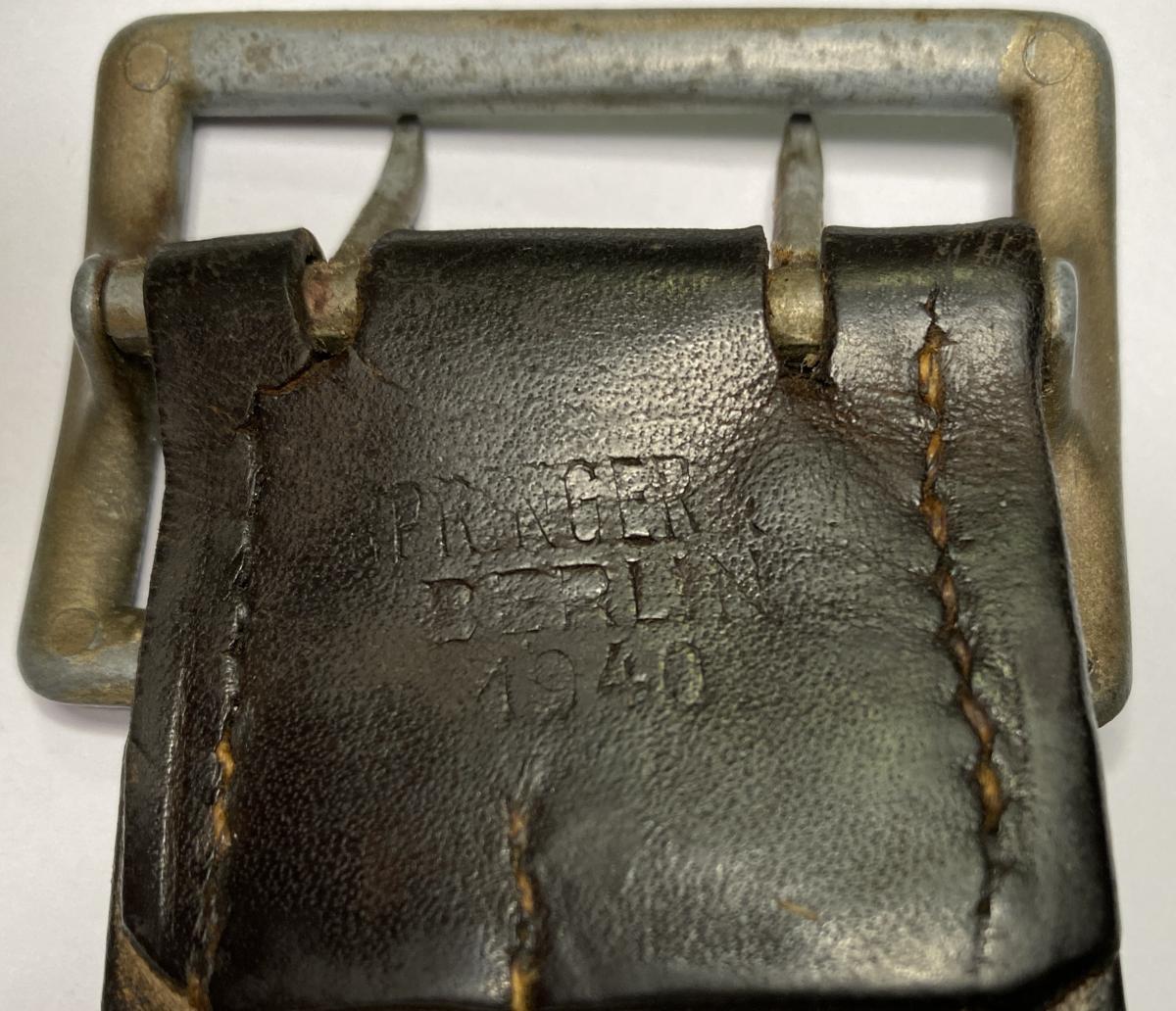 Black leather belt maker stamped SPRAGER BERLIN 1940.Belt leather retaining loop is missing.