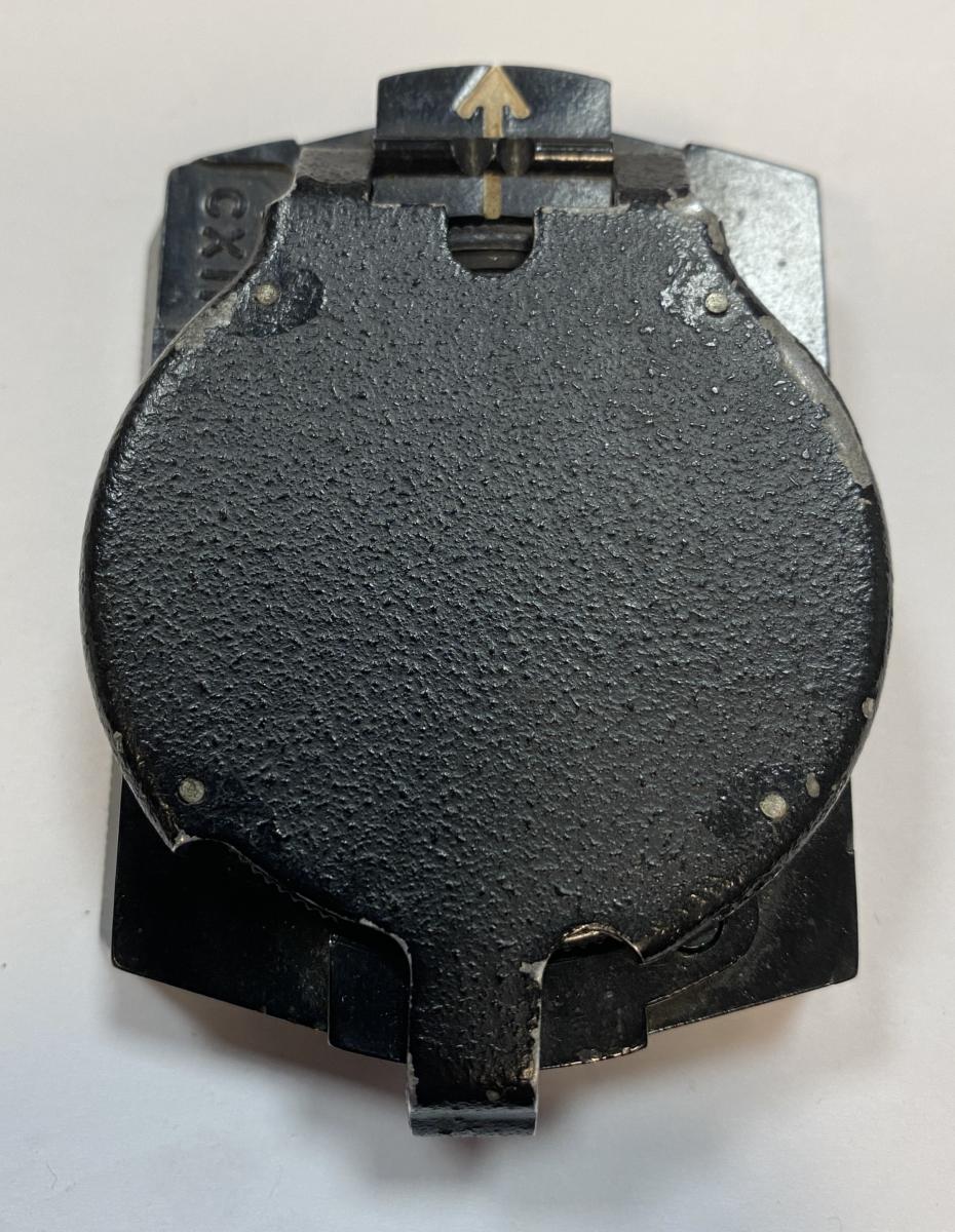 Maker stamped 'cxn' . Bakelite base with alloy lid and mirror. Bakelite base is maker stamped.