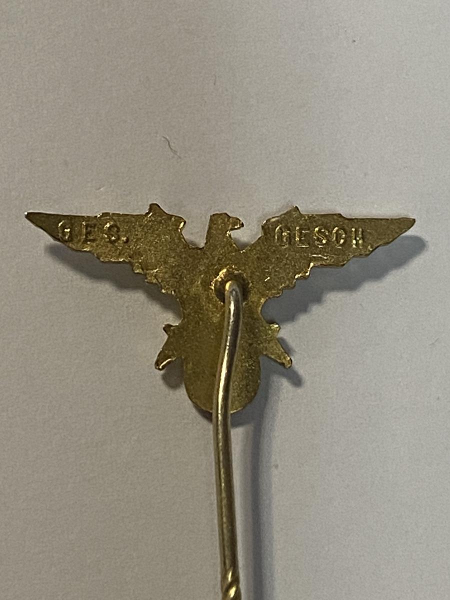Marinebund alloy stickpin with gilt wash. GES GESCH stamped to reverse.
