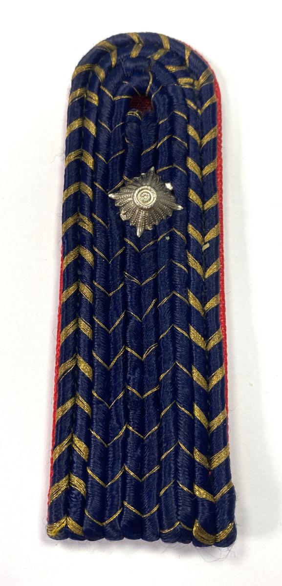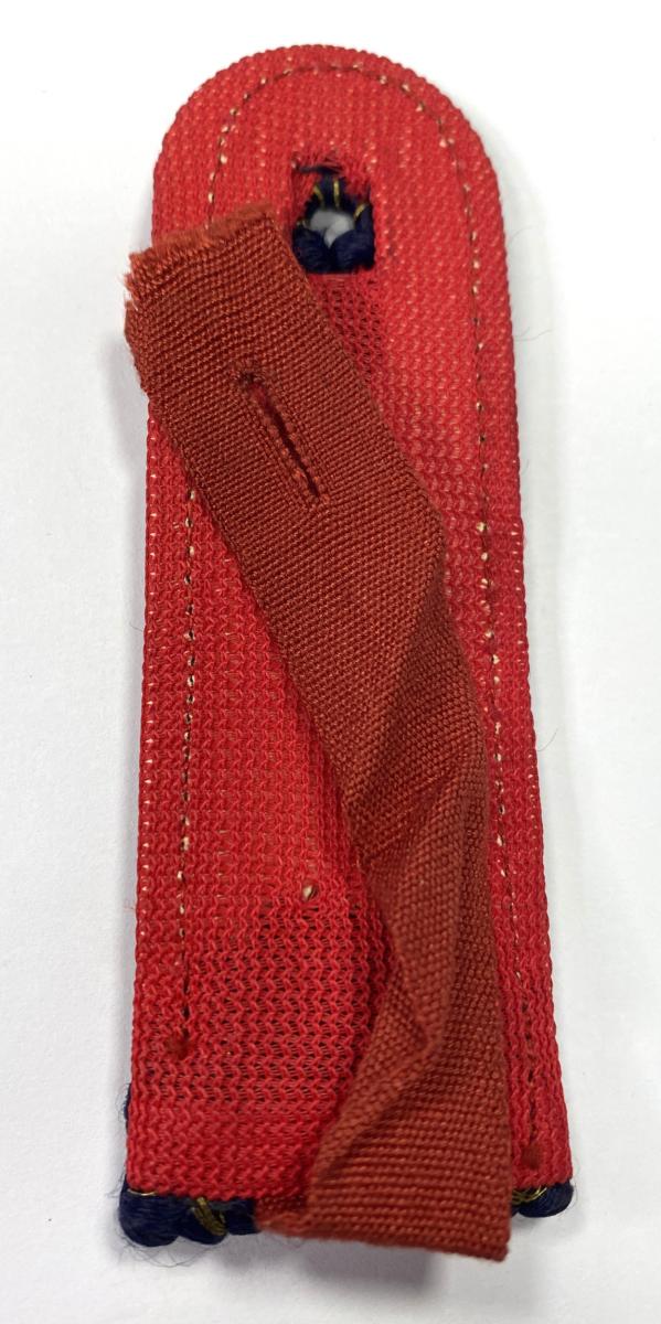 Slip on shoulderboard of navy blue Russian braid on a red wool base. With one alloy rank pip.