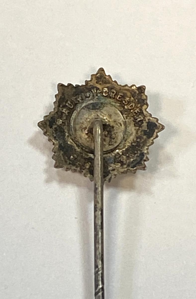 Alloy badge with silver wash and enamelled swastika. Maker stamped 'H.AURICH DRESDEN'.