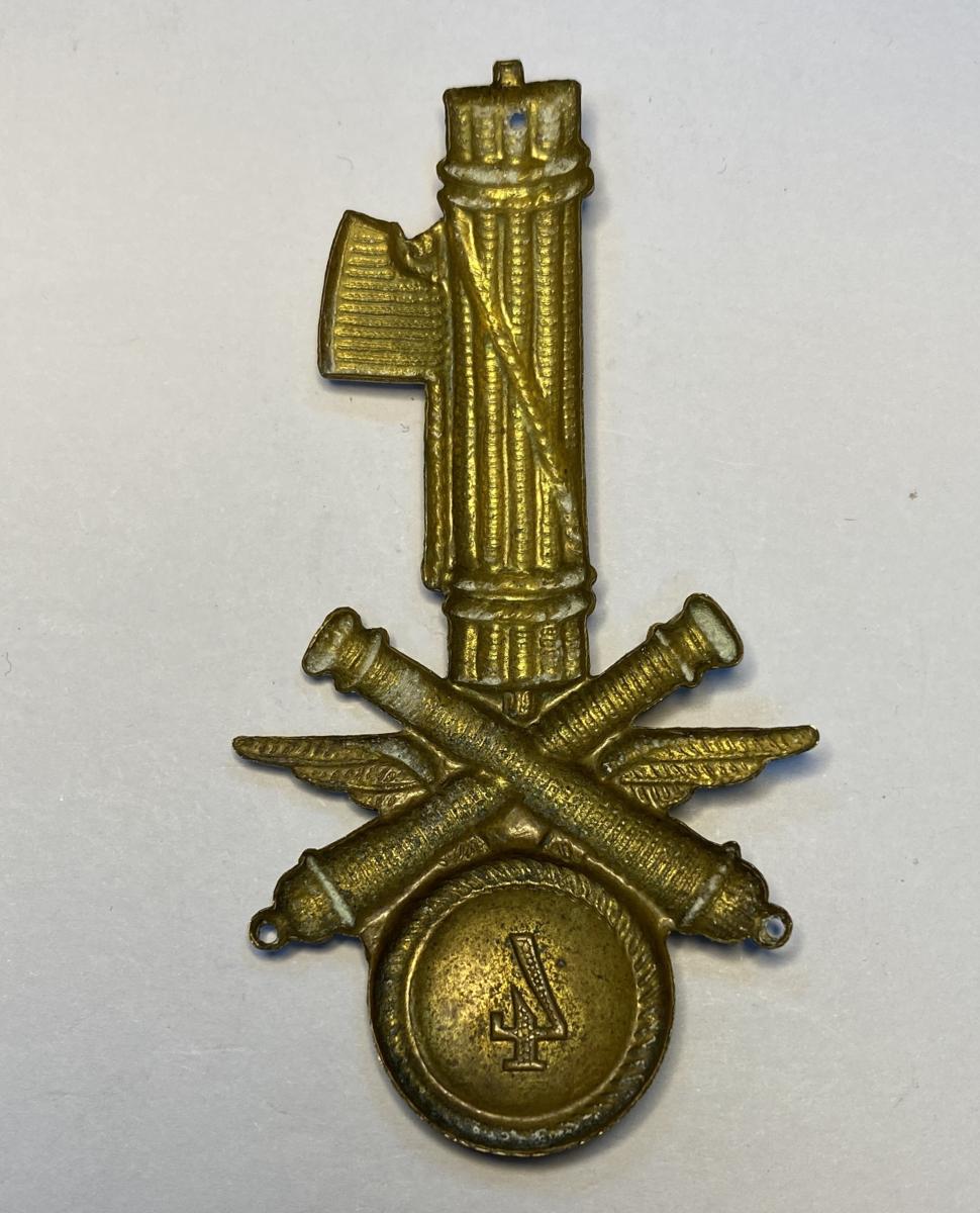 Large metal sew on badge with the number 4 for Italian Home Defence district 4.